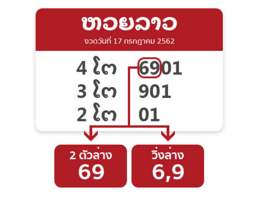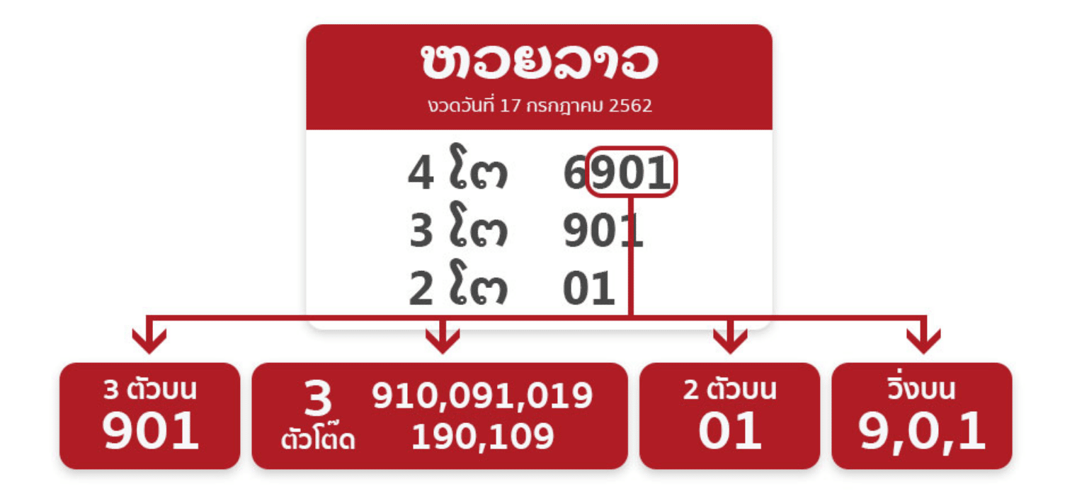 หวยลาวจะออกเลข 4 ตัว โดยวิธีการออกเลข 3 ตัวบน ให้ดูที่หลักหน่วยถึงหลักร้อย ตามาภาพ