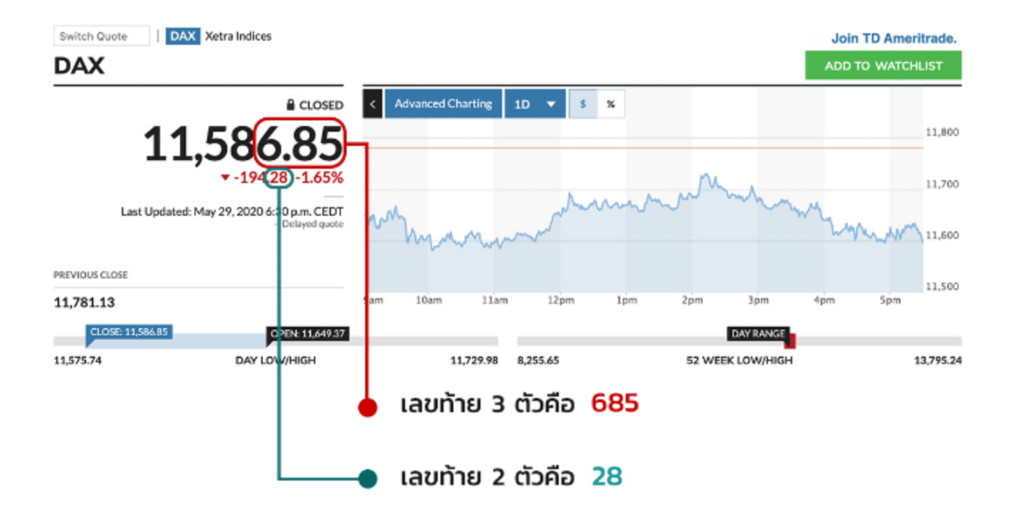 หวยหุ้นเยอรมัน สามารถแทงได้แบบหวยใต้ดิน ที่มีเลข 3 ตัวบน หรือ 2 ตัวล่าง โดยออกผลอ้างอิงตาม ดัชนีปิดตลาดของหุ้นดัชนี Deutshe Borse AG German Stock Index หรือ DAX สามารถเข้าไปดูที่ http://www.marketwatch.com
