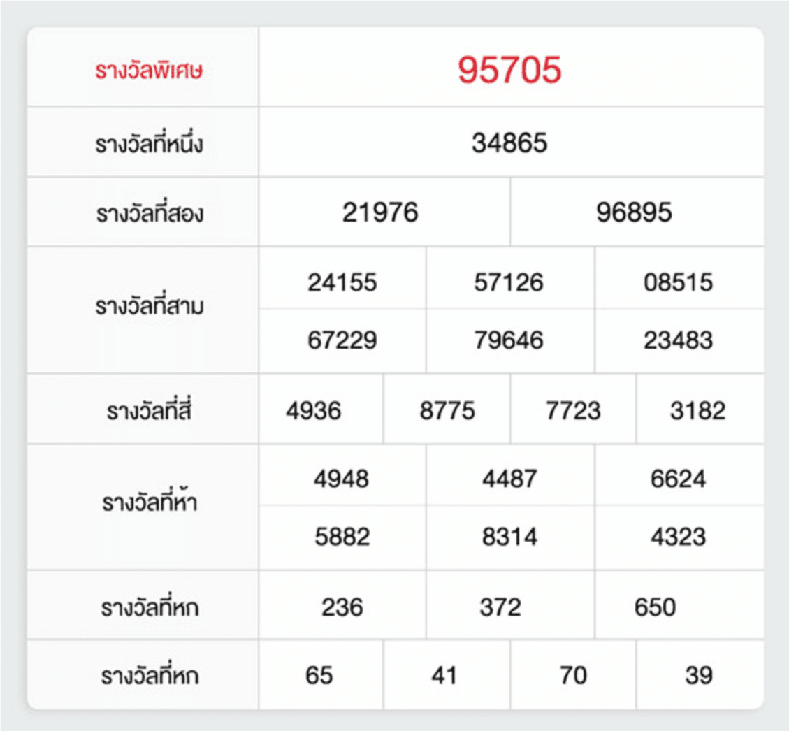 - เลข 3 ตัวบน ให้ดูที่รางวัลที่พิเศษ จะใช้เลขหลักหน่วยถึงหลักร้อย เป็นรางวัลเลข 3 ตัว ในภาพด้านบน คือ 705