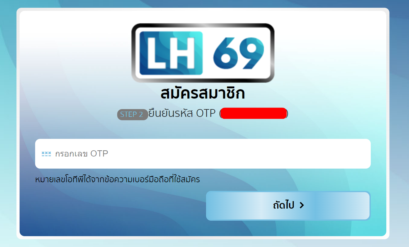 กรอกรหัส otp ที่ได้รับทาง sms มาที่หน้านี้ แล้วกดปุ่ม “ถัดไป”