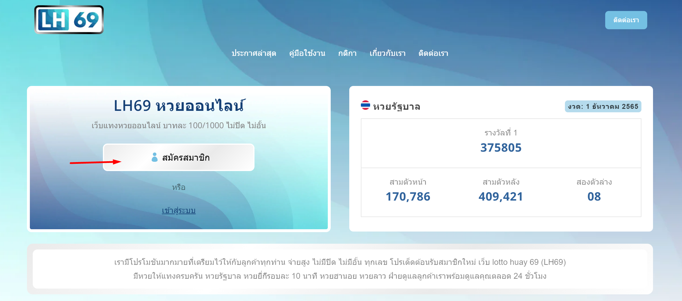 ที่หน้าแรกของ lh69.bet ให้คลิ๊กที่ปุ่ม “สมัครสมาชิก”