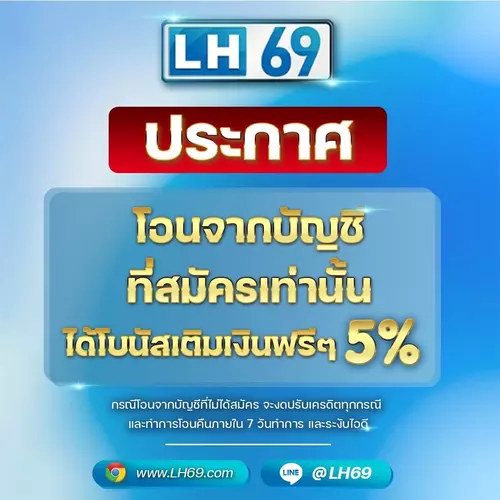 สมาชิกใหม่ lh69 ฝากเงินมาแทงหวย รับเงินเพิ่ม 5%